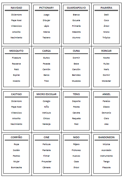 La formación de palabras incluye un conjunto de procedimientos morfológicos que permiten la creación de nuevas palabras a partir de los morfemas. Es otro juego de mesa clásico que consiste en que el jugador dibuje en la pizarra la palabra que aparece escrita en su tarjeta. Asegúrese de que la actualizaremos a tiempo. El primer jugador escribe una palabra que debe adivinar el segundo jugador. Consiste en adivinar el objeto, animal o personaje que te toque.